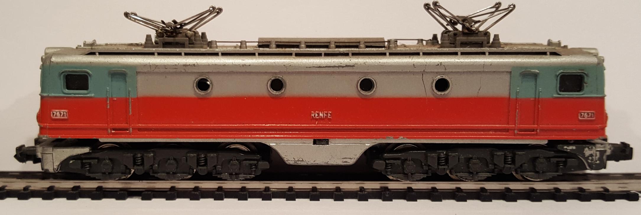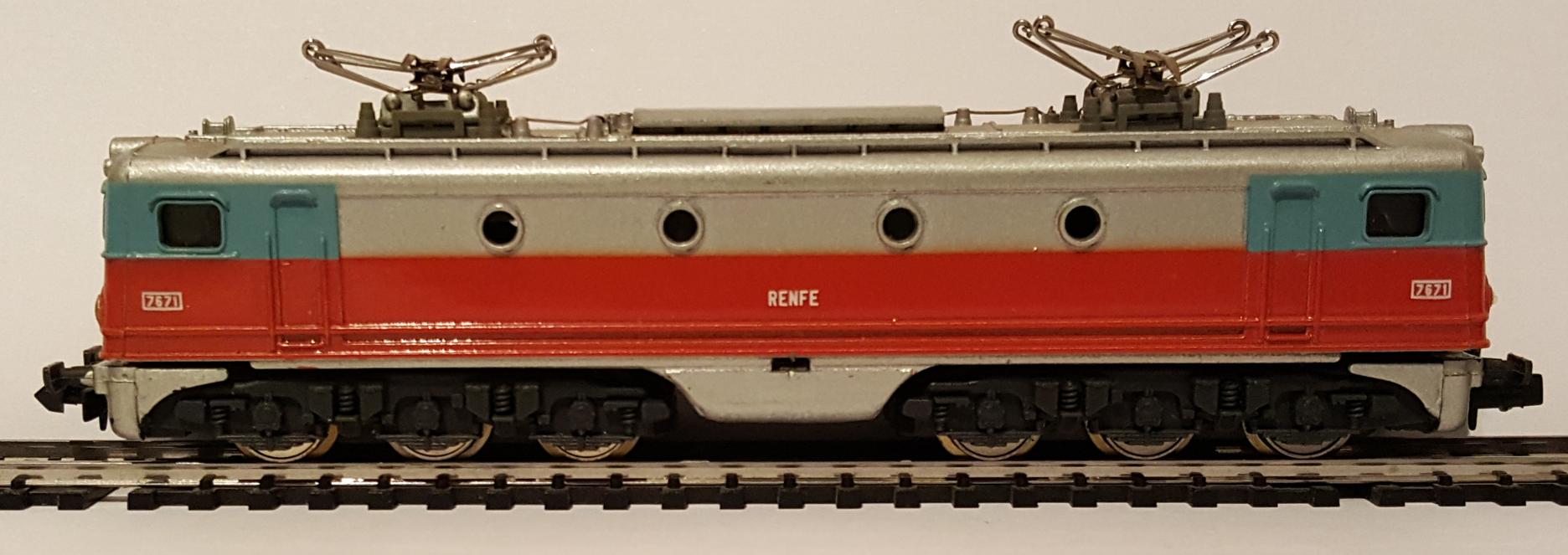 • Locomotora 7671, de la compañía RENFE, esquema Talgo TEE (gris y plateado)