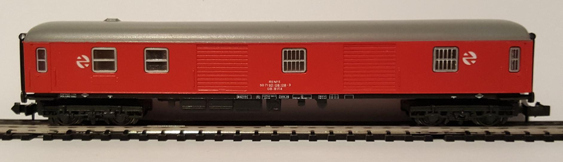 • Furgón de la serie DD 8000, de la compañía RENFE, color rojo
