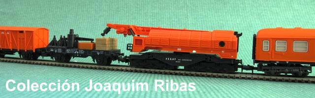 • Grúa autopropulsada y vagón de acompañamiento, de la compañía RENFE, Base naranja