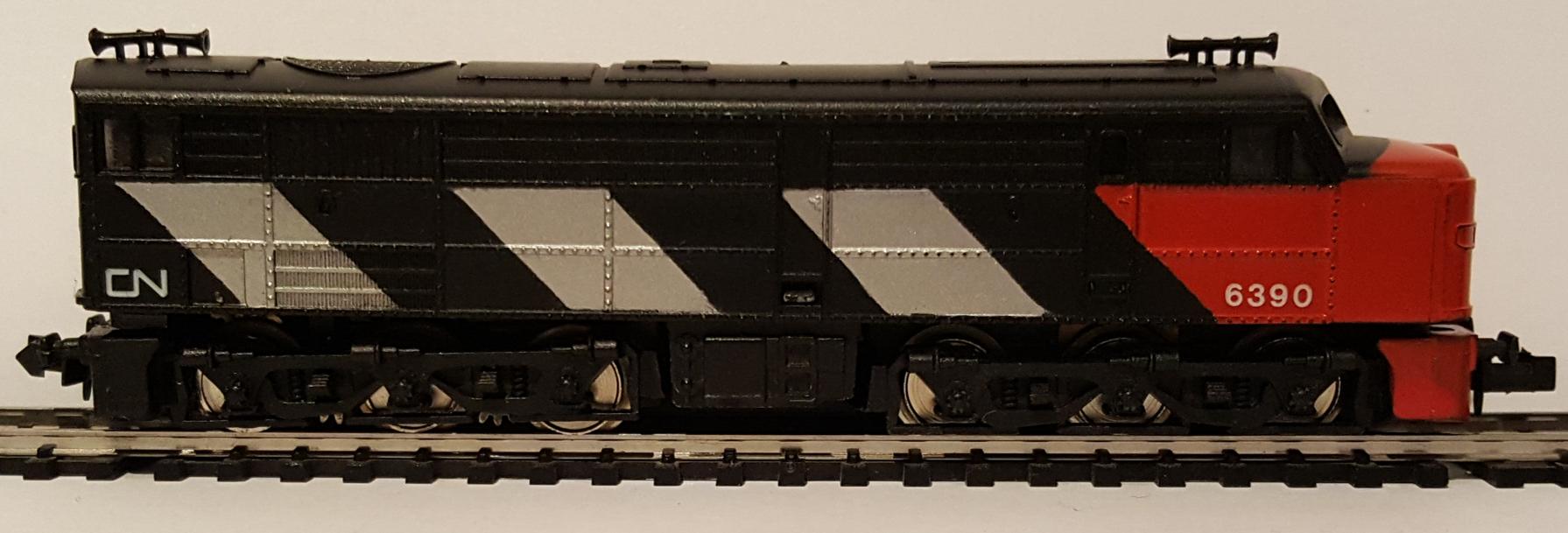 • Locomotora 6390, de la compañía Canadian National, color negro
